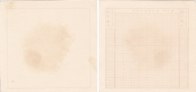 このカードの所有者は、ねずみ色の厚紙(教科書の裏表紙を流用したもの)を、カードよりすこし大きいサイズに切ったものを2枚作っている。たぶん、この厚紙の間にカードをはさんで保護したのだろう。